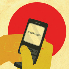 commuter train. There are plenty of signs advising you not to use your phone. Every few minutes announcements are made to the same effect. If you do take a call, you risk more than disapproving gazes. Passengers may appeal to a guard who will quietly but firmly explain: “DAME DESU”–it’s not allowed. Some studies suggest that talking on a mobile phone on a train is seen as worse than in a theatre. Instead, hushed passengers type away on their handsets or read mobile-phone novels (written Japanese allows more information to be displayed on a small screen than languages that use the Roman alphabet).