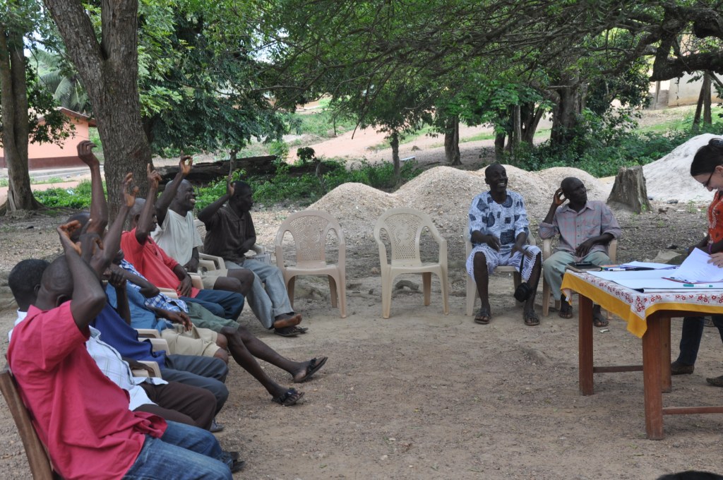 Our discussion at the Kwaku (anonymized) community was facilitated by local representatives of an NGO, working towards food security improvements in the Northern Region, through the introduction of soya crops. Farming is the main economic activity in Kwaku. Situated on alluvial soils, the community faces rainy (18-20oC) and the dry (39-40oC) seasons. Vegetation is mostly savannah woodland, with cash crop trees being dawa-dawa, sheanut and mango; and cultivation crops being yam, groundnut, rice.