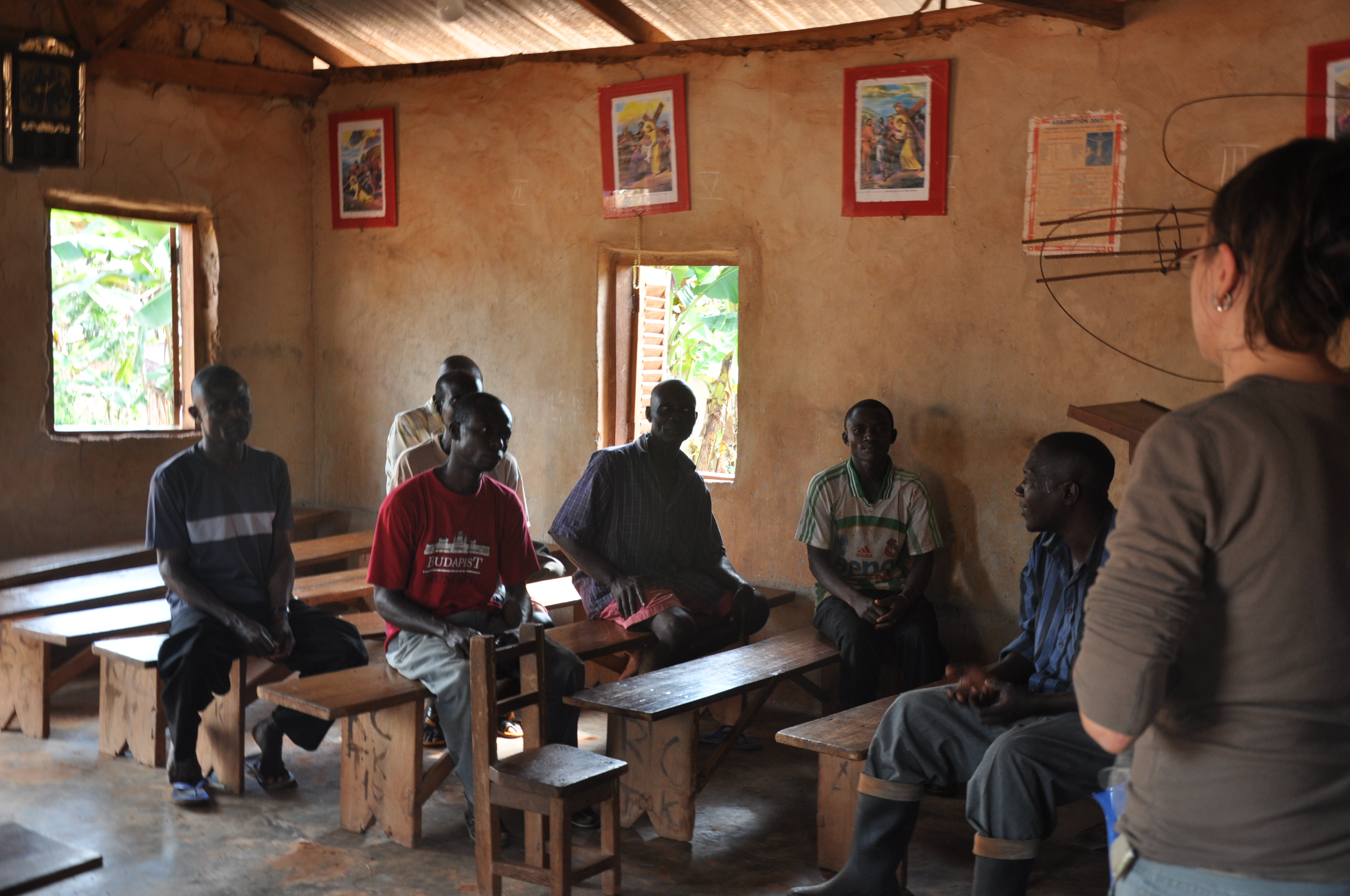 Farmers began the meeting by commenting on new crop varieties and on recent infrastructure developments. The maize variety that was used previously took about 4 to 5 months to mature, but the improved variety which is currently used takes 2 to 3 months to reach maturity. Even though population has been increasing, there is still enough land for farming. In terms of infrastructure, there is no electricity supply but the road to the community was expanded from a narrow foot path to a motorable road in order to aid the transportation of foodstuffs out of the community.
