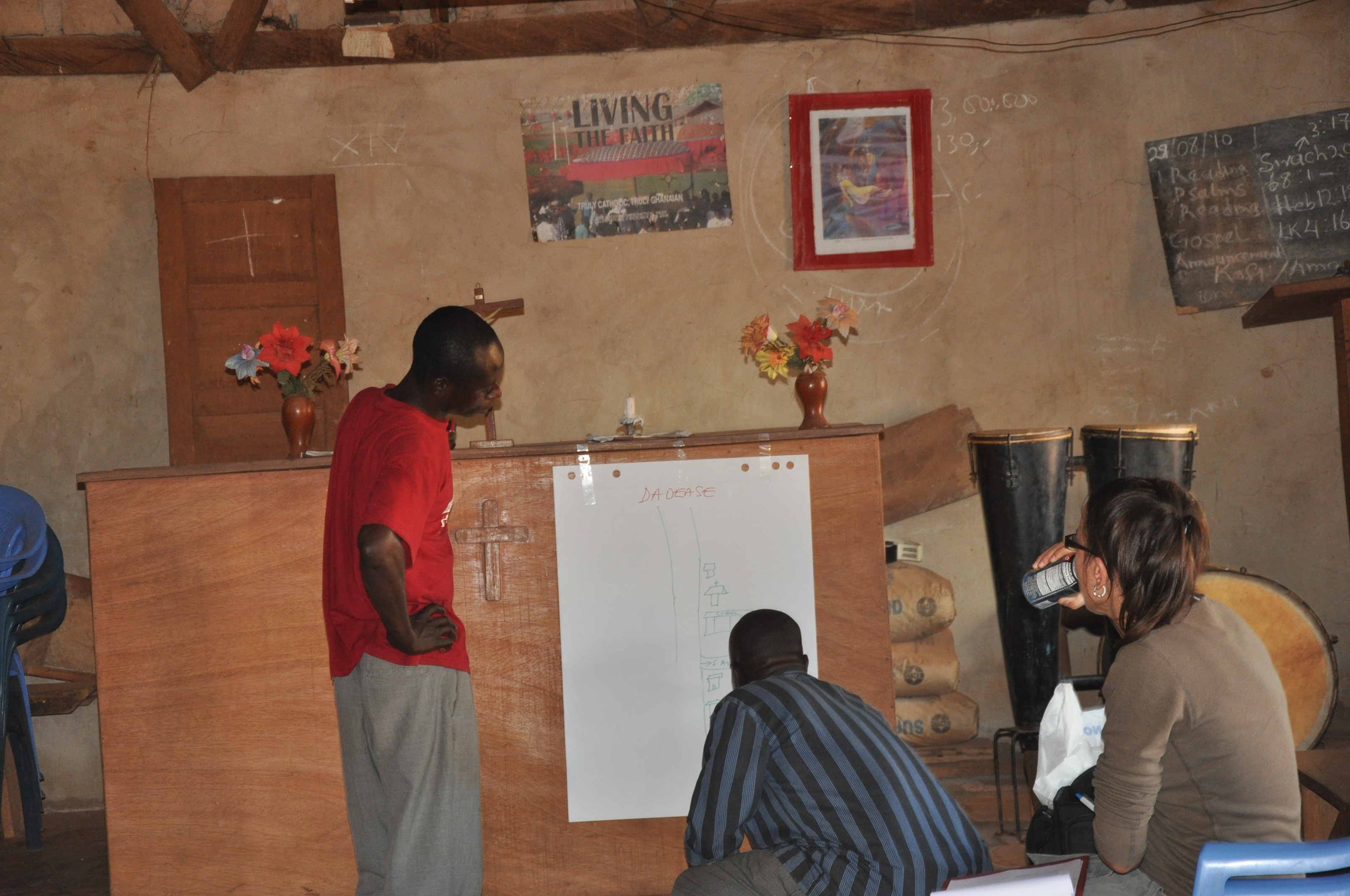 Eight people in the focus group said they have radio sets. They mentioned Radio Savannah, North Star Radio, Radio Justice, Radio Volta and Radio B.A.R as the ones that are transmitted in the area. Radio, they said is mostly listened individually and not in a group; and it is the preferred source of national and international news.Surprisingly, even though people in the Kwaku had no electricity supplu, 3 of the group participants owned TV sets. They bought the television sets when the electric poles were being erected, and they expected that electricity supply will reach them shortly. In terms of legacy technologies, the community has a gong-gong beater who announces meetings. Occasionally, people call each-other on their cell phones to remind of up-coming meetings. Nonetheless, it is considered profligate.